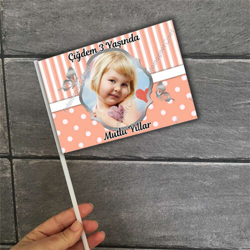 Gümüş Kelebek Temalı Somon Rengi Parti Bayrağı