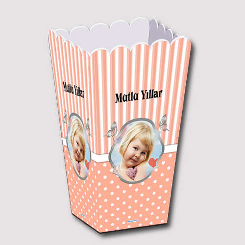 Gümüş Kelebek Temalı Somon Rengi - Popcorn Kutusu