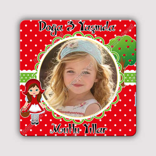 Kırmızı Başlıklı Kız Temalı Puantiyeli - Kare - Magnet