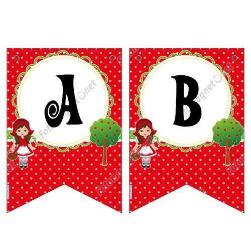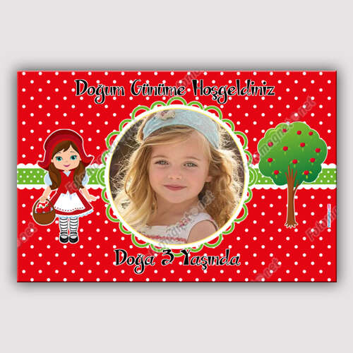 Kırmızı Başlıklı Kız Temalı Puantiyeli - Banner - Flama - İkili