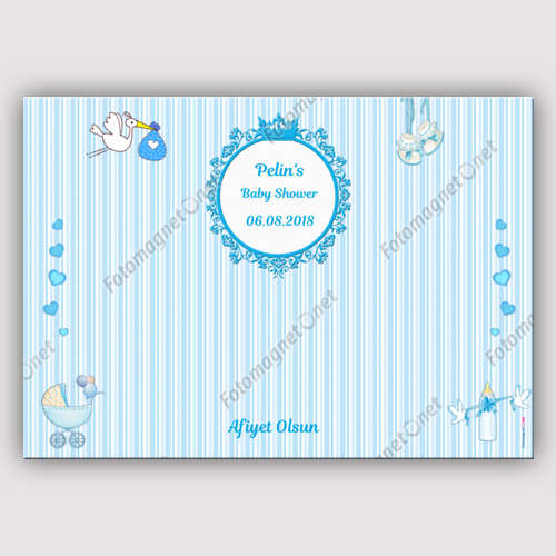 Mavi Baby Shower - Yatay - Hatıra - Magnet