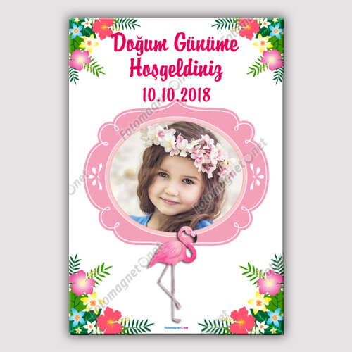 Flamingo Temalı Renkli Çiçekli Parti Bayrağı