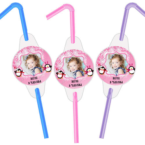 Penguen Temalı Pembe - Poster - Kapı Süsü