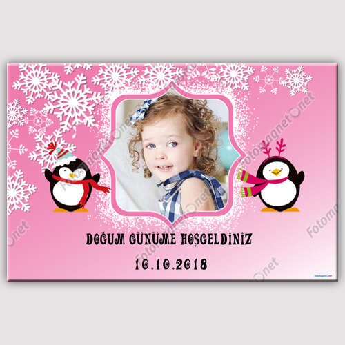 Penguen Temalı Pembe - Dikey - Poster - Kapı Süsü