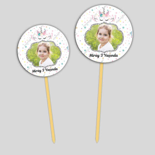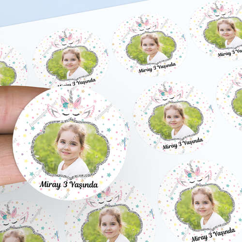 Unicorn Temalı Gümüş Simli - Fotoğraflı - Sticker