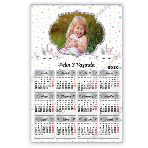 Unicorn Temalı Gümüş Simli 2026 Takvim Magnet