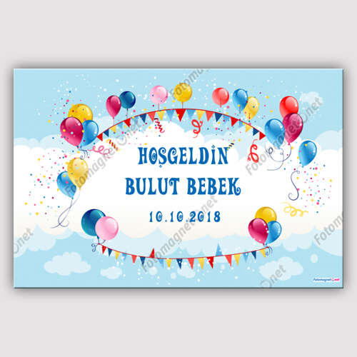 Renkli Balonlu Mavi - Hoş Geldin Bebek - Hatıra Ahşap Kapaklı Anı Defteri/tarihsiz Ajanda