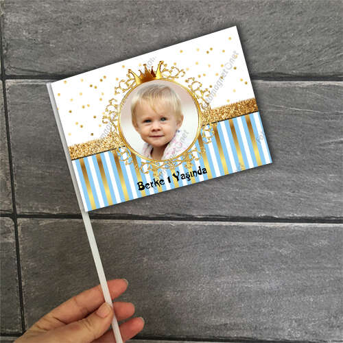 Prens Taçlı Mavi Dore Parti Bayrağı