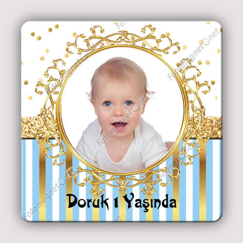 Mavi Dore Taçsız - Kare - Doğum Günü - Magnet