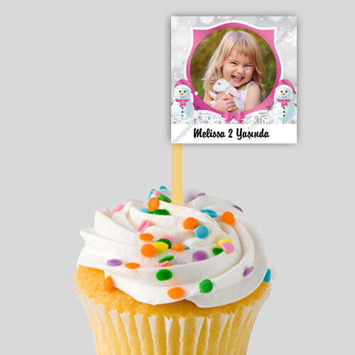 Kardan Adam Temalı Pembe Gümüş Parti Bayrağı