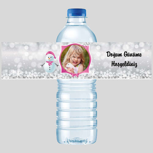 Kardan Adam Temalı Pembe Gümüş - Şişe Etiketi