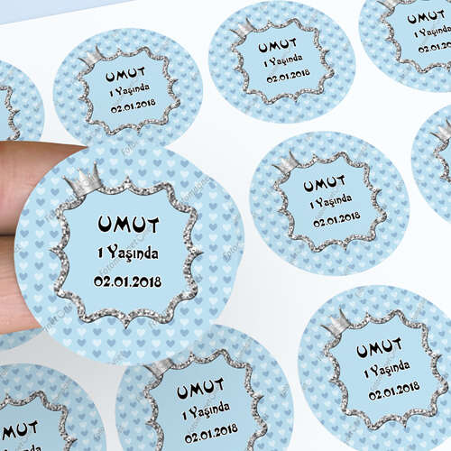 Gümüş Taçlı Mavi Kalpli - Sargılı Çikolata Etiketi