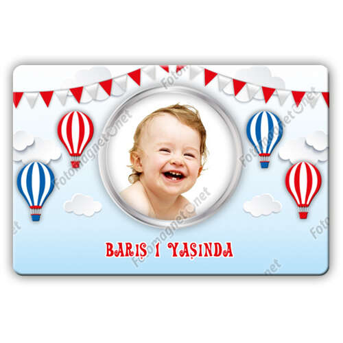 Kırmızı Mavi Uçan Balon Temalı - Magnet - Açacak