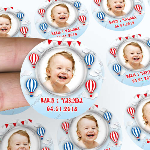 Kırmızı Mavi Uçan Balon Temalı - Şişe Etiketi