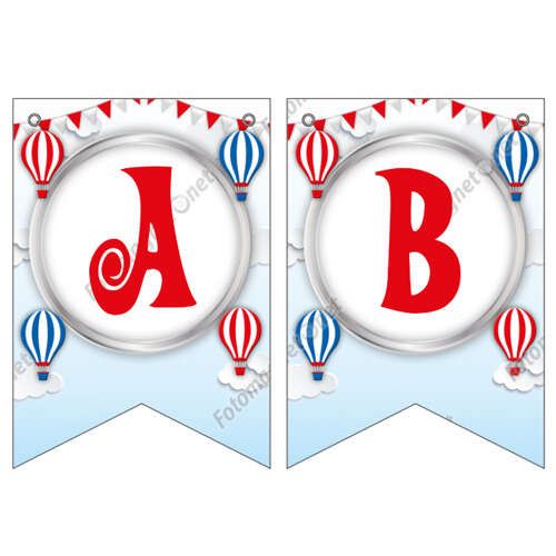 Kırmızı Mavi Uçan Balon Temalı - Banner - Flama - İkili