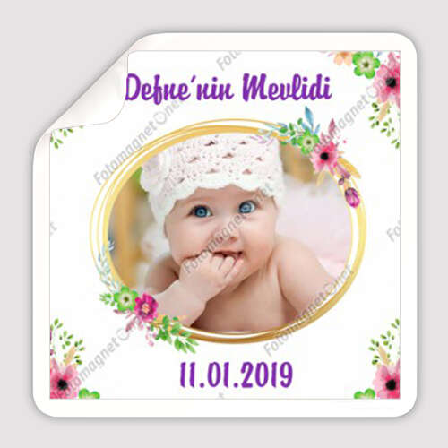 Çiçekli Bebek Mevlidi - Kare - Hatıra - Magnet