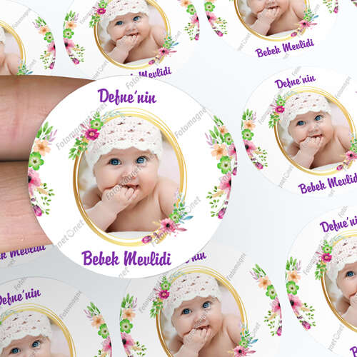 Çiçekli Bebek Mevlidi - Kare - Etiket -