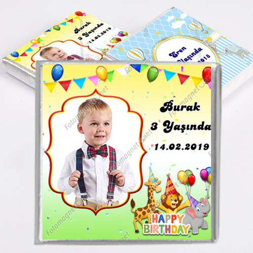 Fil Aslan Ve Zürafa Temalı - Sargılı Çikolata Etiketi
