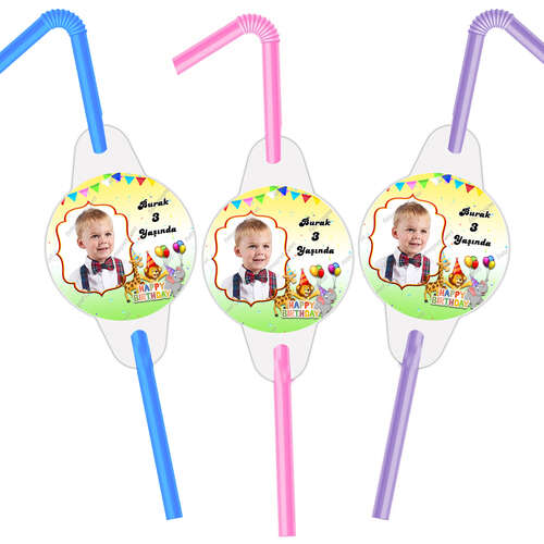 Fil Aslan Ve Zürafa Temalı - Pipet
