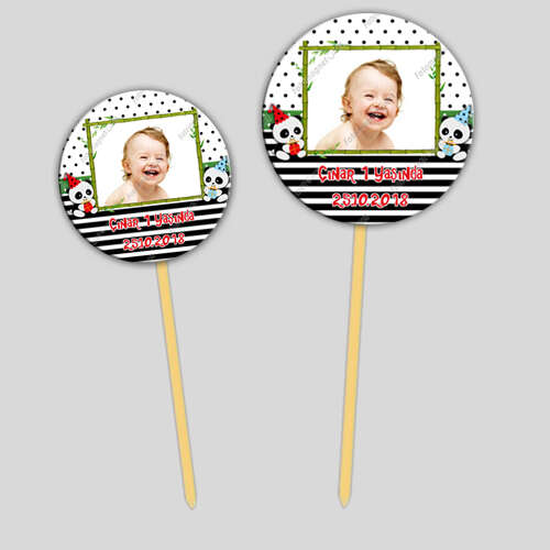 Panda Temalı Siyah Beyaz Puantiyeli - Sticker