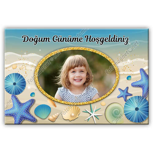 Kumsal Temalı Doğum Günü - Kare - Magnet