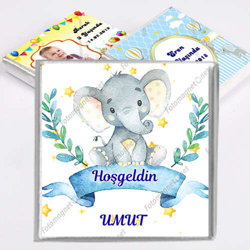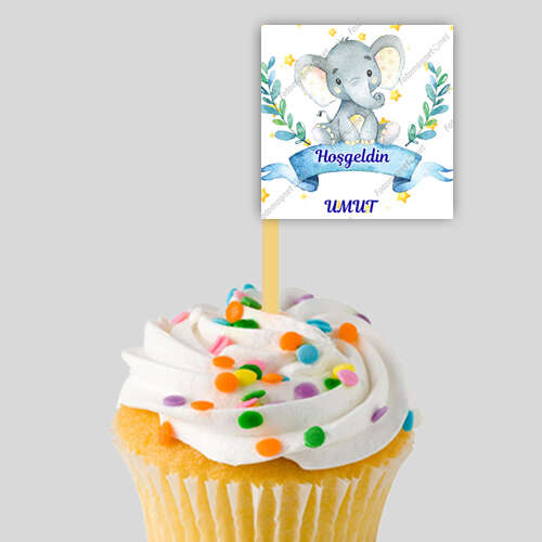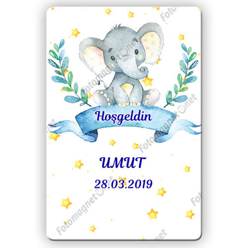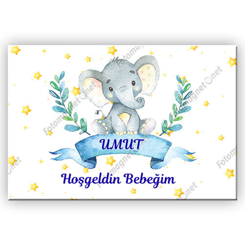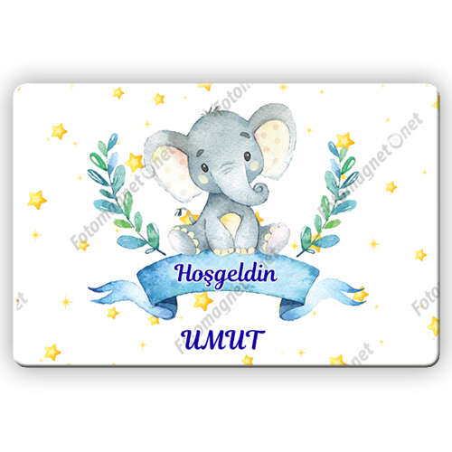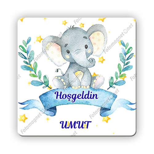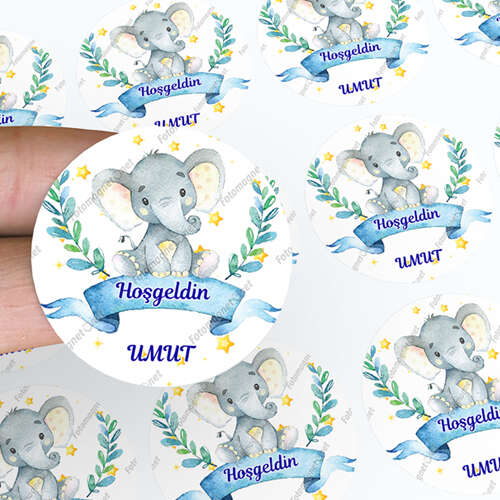 Sevimli Fil Ve Yıldızlar Temalı - Hoş Geldin Bebek - Kare - Sticker