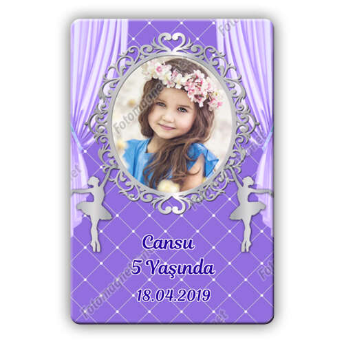 Balerin Temalı Mor Gümüş - Kare - Hatıra - Magnet