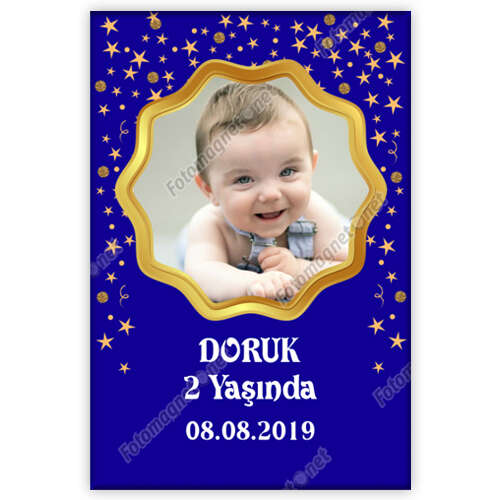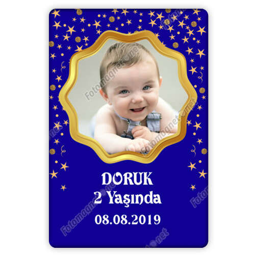 Dore Lacivert Yıldızlı - Doğum Günü - Magnet - Açacak