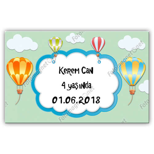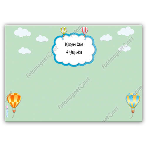 Uçan Balon Temalı Suyeşili - Fotoğraflı - Magnet - Açacak