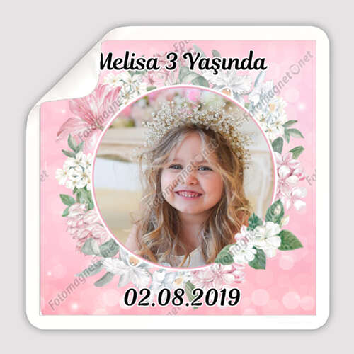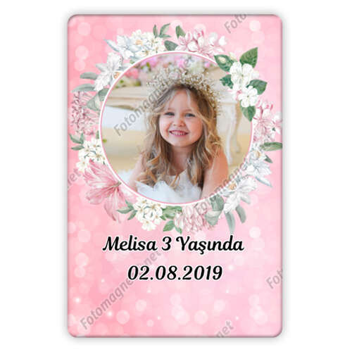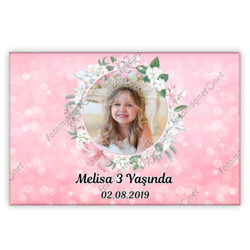 Pembe Beyaz Çiçek Çerçeveli - Hatıra - Magnet