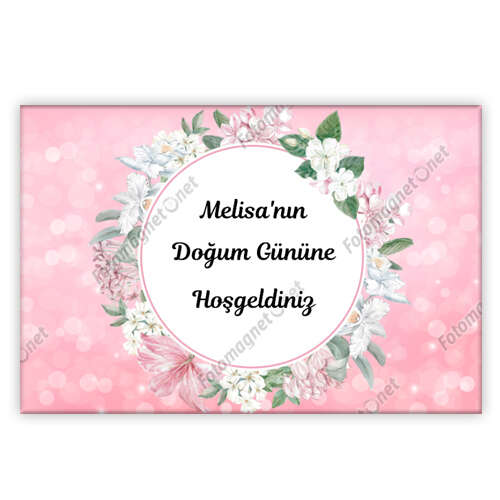 Pembe Beyaz Çiçek Çerçeveli - Yatay - Fotoğrafsız - Poster - Kapı Süsü