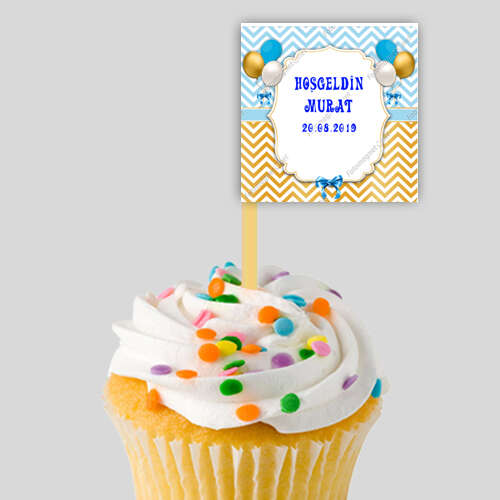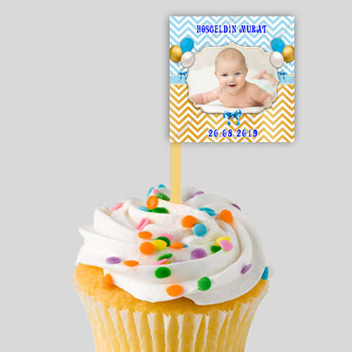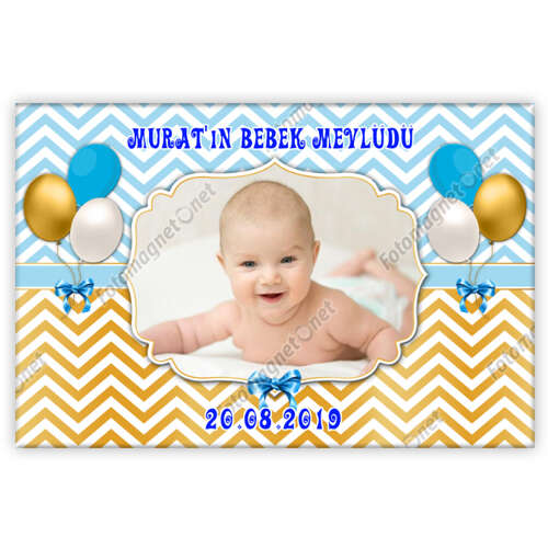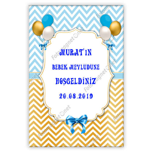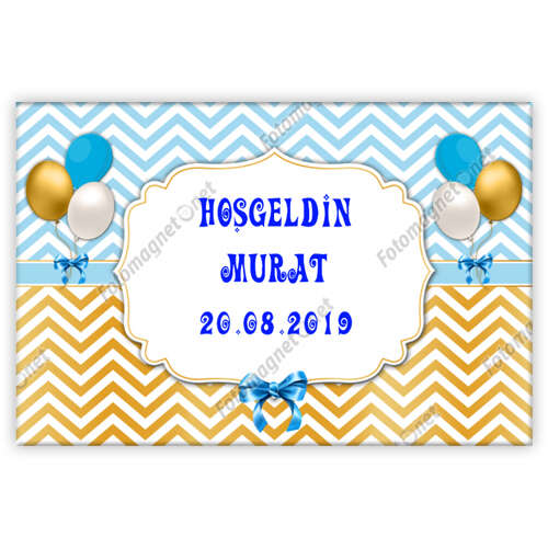 Mavi Dore Balonlu - Hoş Geldin Bebek - Fotoğraflı - Kürdan Bayrak