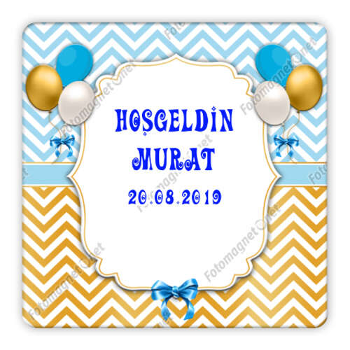 Mavi Dore Balonlu - Hoş Geldin Bebek - Kare - Hatıra - Magnet