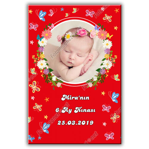 Kırmızı Kelebek Temalı 6 Ay Kınası - Metal - Açacak - Anahtarlık