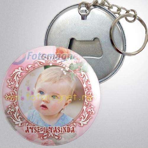 Pembe Çiçekli Doğum Günü - Fotoğrafsız - Metal - Açacak - Anahtarlık