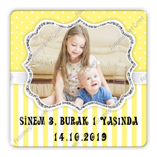 Sarı Beyaz Puantiyeli - Kare - Hatıra - Magnet