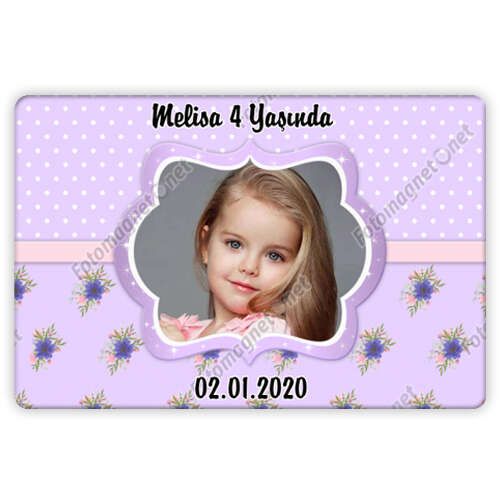 Lila Beyaz Çiçek Temalı - Kare - Hatıra - Magnet