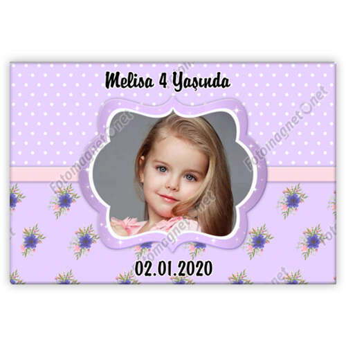 Lila Beyaz Çiçek Temalı - Yatay - Hatıra - Magnet