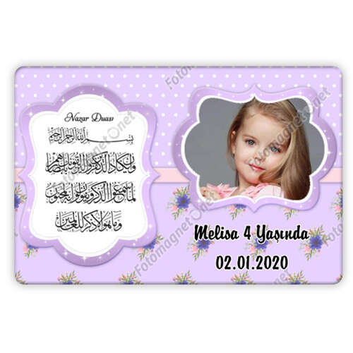 Lila Beyaz Çiçek Temalı Nazar Dualı - Hatıra - Magnet