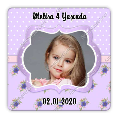 Lila Beyaz Çiçek Temalı - Kare - Hatıra - Magnet