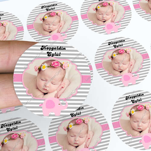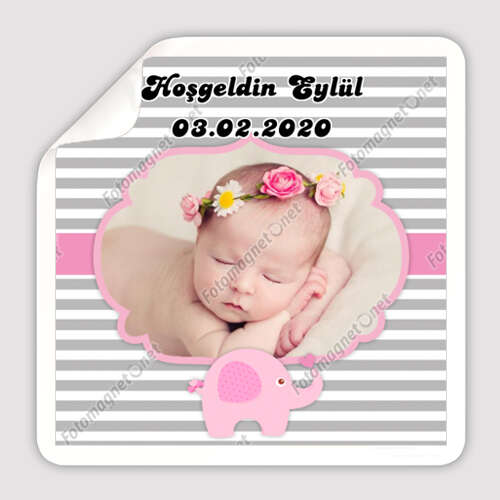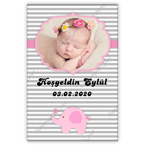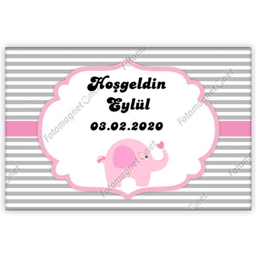 Pembe Gri Fil Temalı - Hoş Geldin Bebek - Banner - Flama - İkili