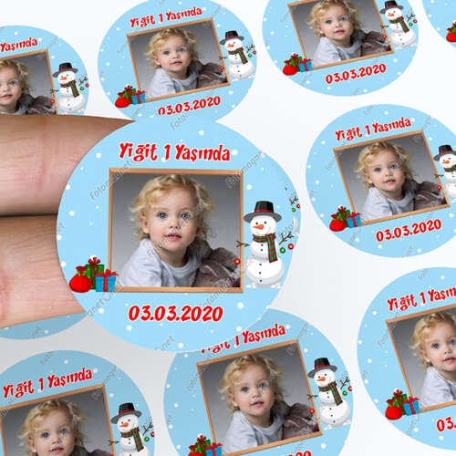 Kardan Adam Temalı Mavi - Kare - Etiket -