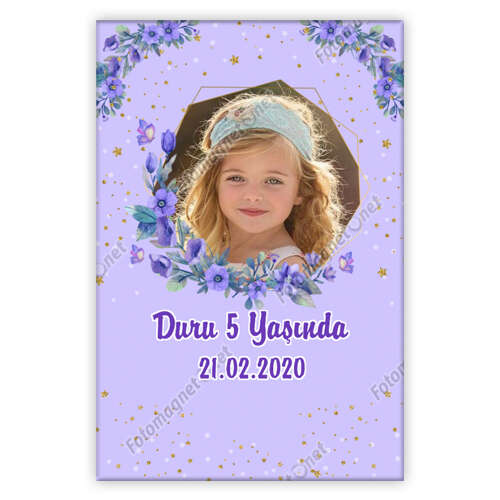Mor Lila Çiçek Temalı - Fotoğrafsız - Poster - Kapı Süsü
