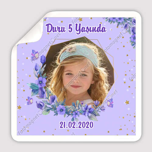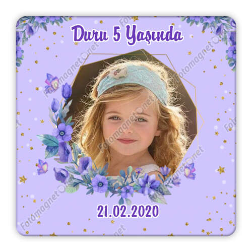 Mor Lila Çiçek Temalı - Kare - Hatıra - Magnet