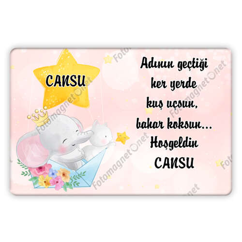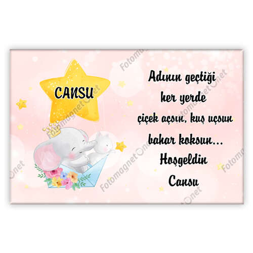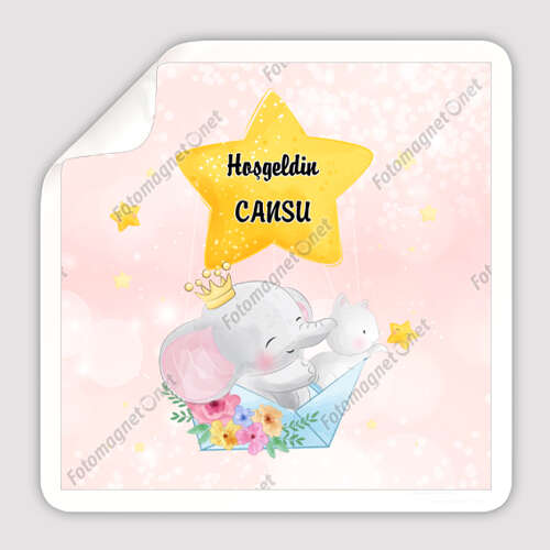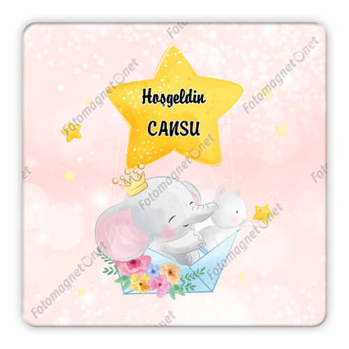 Fil Ve Kedi Temalı - Hoş Geldin Bebek - 2026 Takvim Magnet