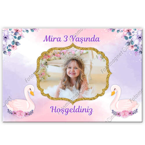 Kuğu Temalı - Fotoğraflı - Yatay - Poster - Kapı Süsü