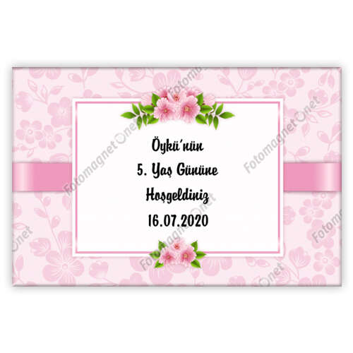 Pembe Çiçek Desenli Zarflı - Doğum Günü Davetiyesi