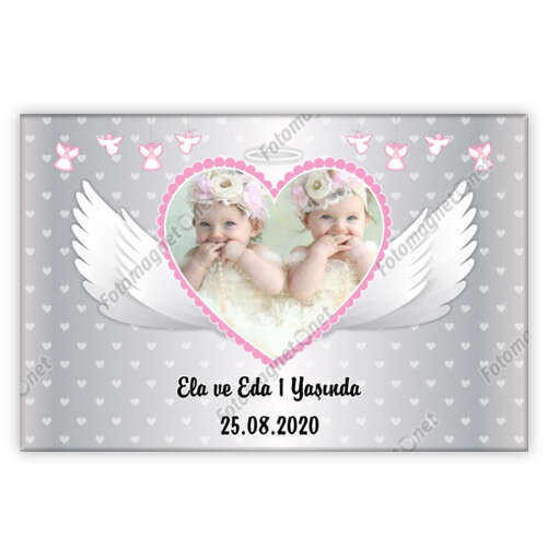 Melek Temalı Gümüş Pembe - Metal - Magnet - Açacak