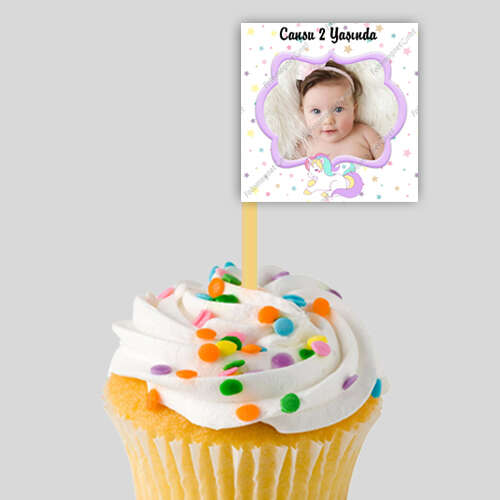 Unicorn Temalı Lila Çerçeveli - Kürdan Süs