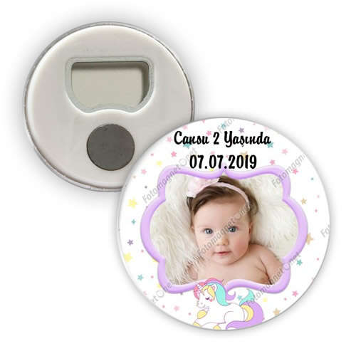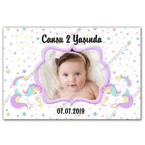 Unicorn Temalı Lila Çerçeveli - Magnet - Açacak